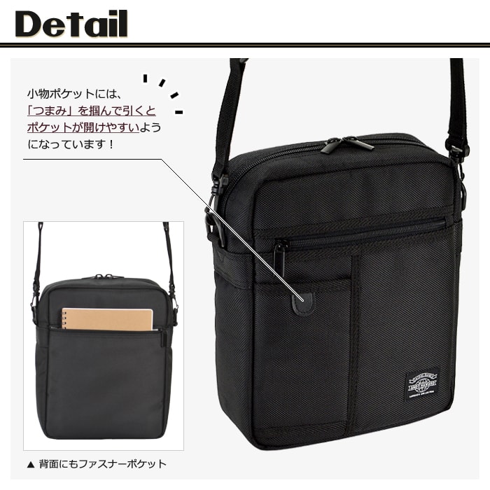 ◆普段のお出かけ用や父の日、バレンタイン、クリスマス、誕生日、お祝い、記念日などのプレゼントにも最適です! -INFORMATION- 素材 ポリエスター 裏PVC サイズ 20×26×8cm 重量 約290g ※ ショルダーベルト(約70g)を除く カラー 黒 正面 ファスナーポケット、小物ポケット 背面 ファスナーポケット 本体内部 2分割アテポケット、ファスナーポケット、可倒式底板 その他 着脱式ショルダーベルト 生産国 中国