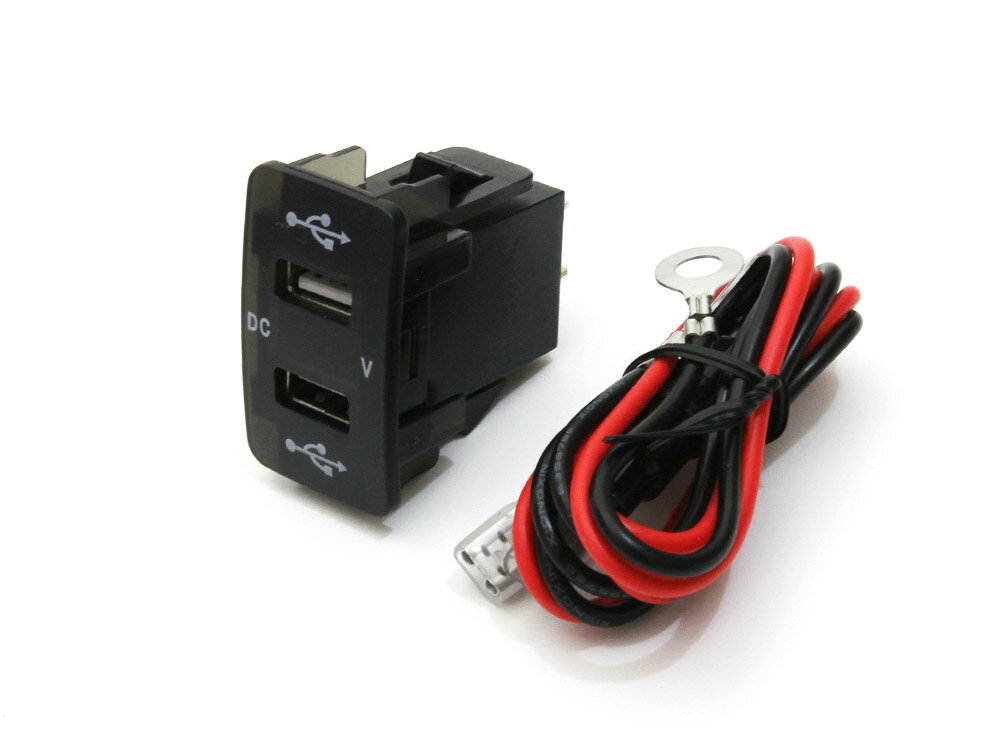 日産車 2USBポート スイッチホールカバー 電圧計/赤LED付 車載 急速 充電USBポート スイッチパネル 蓋付き 約27mm×24mm