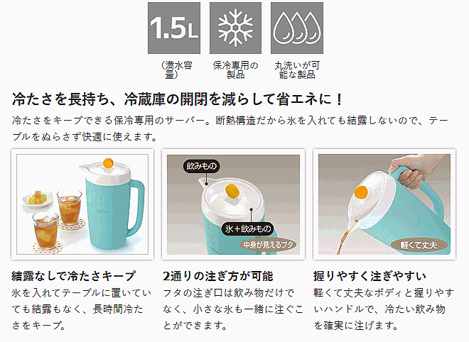 サーモス 保冷サーバー ミントブルー 1.5L [TPG-1500-MBL] 象印 ステンレスフードジャー はこちらから↓↓ 象印 ステンレスマグ はこちらから↓↓ 《ご注意点》 ●【納期】通常一週間ほどです。