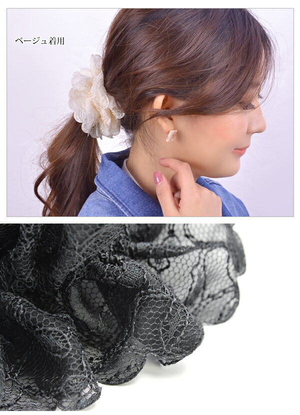 - 【20170420UP】,アクセサリー,原宿,ファッション,パーツ,レース,シュシュ,ヘアアクセサリー,ヘアアクセ,ヘアゴム,スカラッップ,ピンク,アイボリー,ネイビー,ベージュ,ブラック,かわいい,女性的,フェミニン,レディース,華やか,