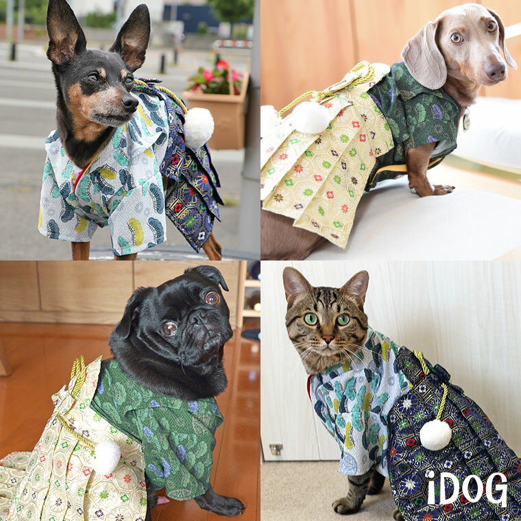 ポイント 金糸を使用した豪華な袴 細部までこだわった作り iDogオリジナル柄の身頃 商品詳細 カラー 緑色/白色 素材 身頃・紐:ポリエステル90%、スパン10% / 袴:ポリエステル100% サイズ XS/S/M/L/XL/XXL/DS/DM/DL 生産国 中国(企画・デザイン:日本) 身ごろは着物などによく使われているような素材で、ちりめん風の縮れ加工をほどこしてあります。
