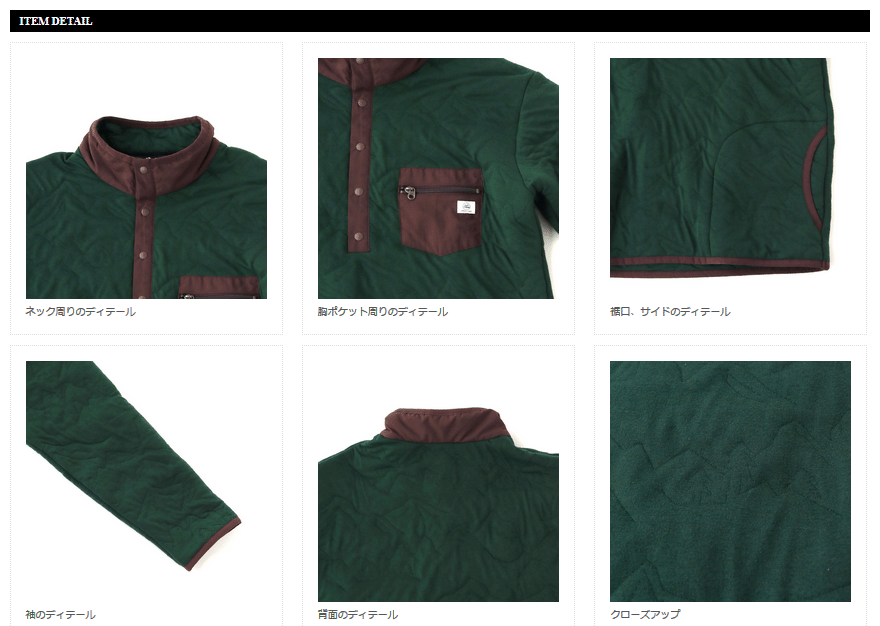 襟元や、胸ポケットナイロン・スナップ仕様や袖や裾口のパイピングしようなど、 随所にアウトドア感が漂います。