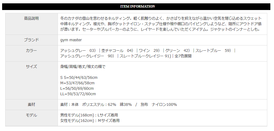 gym master 【ジムマスター】マウンテンキルトプルオーバー メンズ レディース ユニセックス 中綿 秋冬 ウォーム 温かい 防寒 かわいい おしゃれ G333617